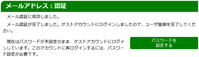 トップ ご利用ガイド メール認証 ページ メール認証 メール認証とは、メールの受信を確認することで、メールアドレスの有効性を確認するものです。 お手続きは3ステップですぐに完了します。 ここでは、ユーザ登録(アカウントをお持ちでない場合)を行う際のメール認証をご案内いたします。 他には、パスワード再設定(ログイン時のパスワードをお忘れの場合)・メールアドレス変更(アカウントに登録したメールアドレスを変更する場合)・認証6ヶ月経過後にも改めて必要となります。 当ページの内容は、2025/06/23時点のものです。 (1/3)メールアドレス入力 当サイトでご利用になられるメールアドレスを入力してください。 すでにお持ちのメールアドレスで、使い勝手の良いものを入力してください。当サイトはGmailにも送信できます。 ブラウザは閉じずに表示させたままにしてください。 当サービスが新しいメールアドレスを発行するものではありません。 (2/3)認証キー 入力されたメールアドレスに届いたメールをご確認ください。 件名並びに内容に記載された認証キーを入力してください。 認証キーは6桁の数字です。 (3/3)完了 認証が完了しました。 次に必要な手続きがある場合は、下部に案内が表示されます。 ご利用の状況により案内の内容は変わります。 表示されない場合もあります。