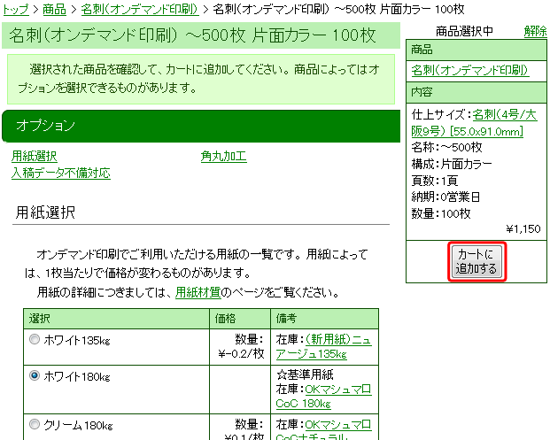 「名刺(オンデマンド印刷)」の詳細画面が表示されました。