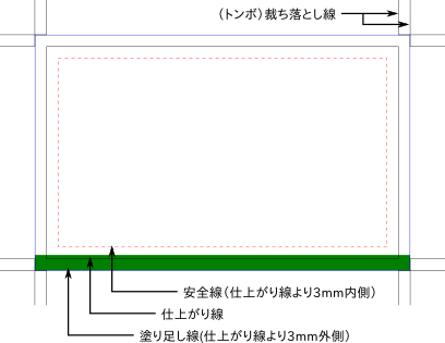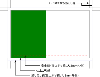 仕上がりイメージです。 塗り足しだけではなく、安全線も意識するようにしてください。