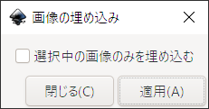 すべての画像を埋め込む必要があるので、「選択中の画像のみを埋め込む」のチェックは外します。 「適用」ボタンを押下します。
