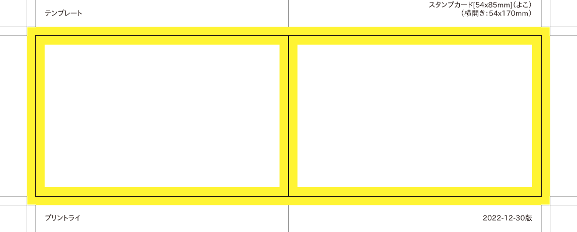 スタンプカードは見開きのサイズで管理しています。 こちらは54x170mmです。 スタンプカード(よこ)の横開き・スタンプカード(たて)の縦開きです。