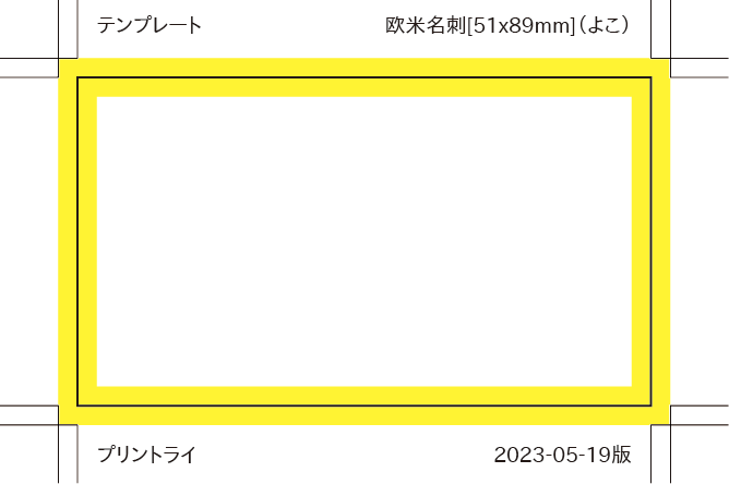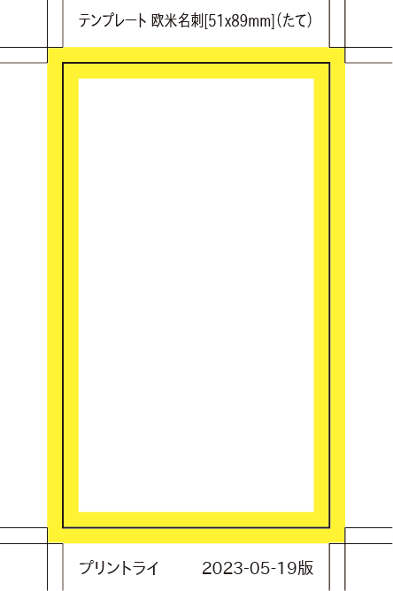 他店のテンプレートファイルでは、inch/mmの換算で一の位を切り捨て50x88mmとしているものがあります。 当店では、51x88mmとして扱いますので、そのまま入稿してください。